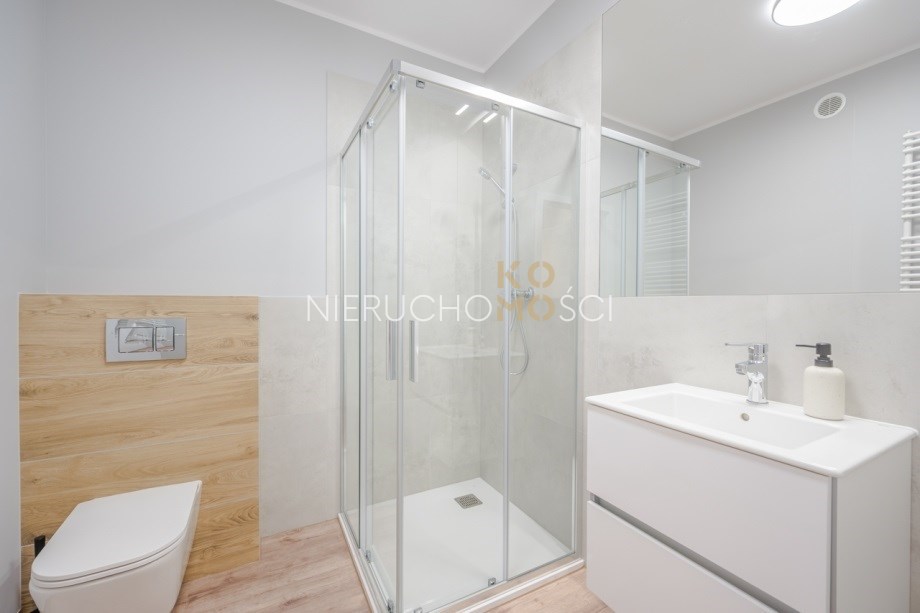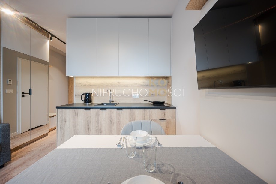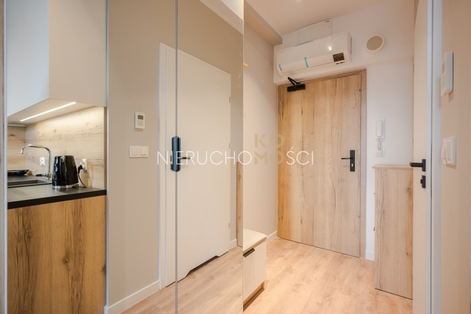 Lokal- o powierzchni 22,7 m² składa się z przestronnego salonu połączonego z aneksem kuchennym, korytarza oraz łazienki. Mieszkanie jest funkcjonalne i dobrze doświetlone. Lokal jest w pełni wyposażony. Aneks kuchenny wykonany pod wymiar z zabudowanymi sprzętami AGD. Łazienka wykończona nowocześnie z dużą kabiną prysznicową. Dla pełnego komfortu zamontowano klimatyzacje. Do mieszkania przynależy miejsce w hali garażowej. Ogrzewanie miejskie.