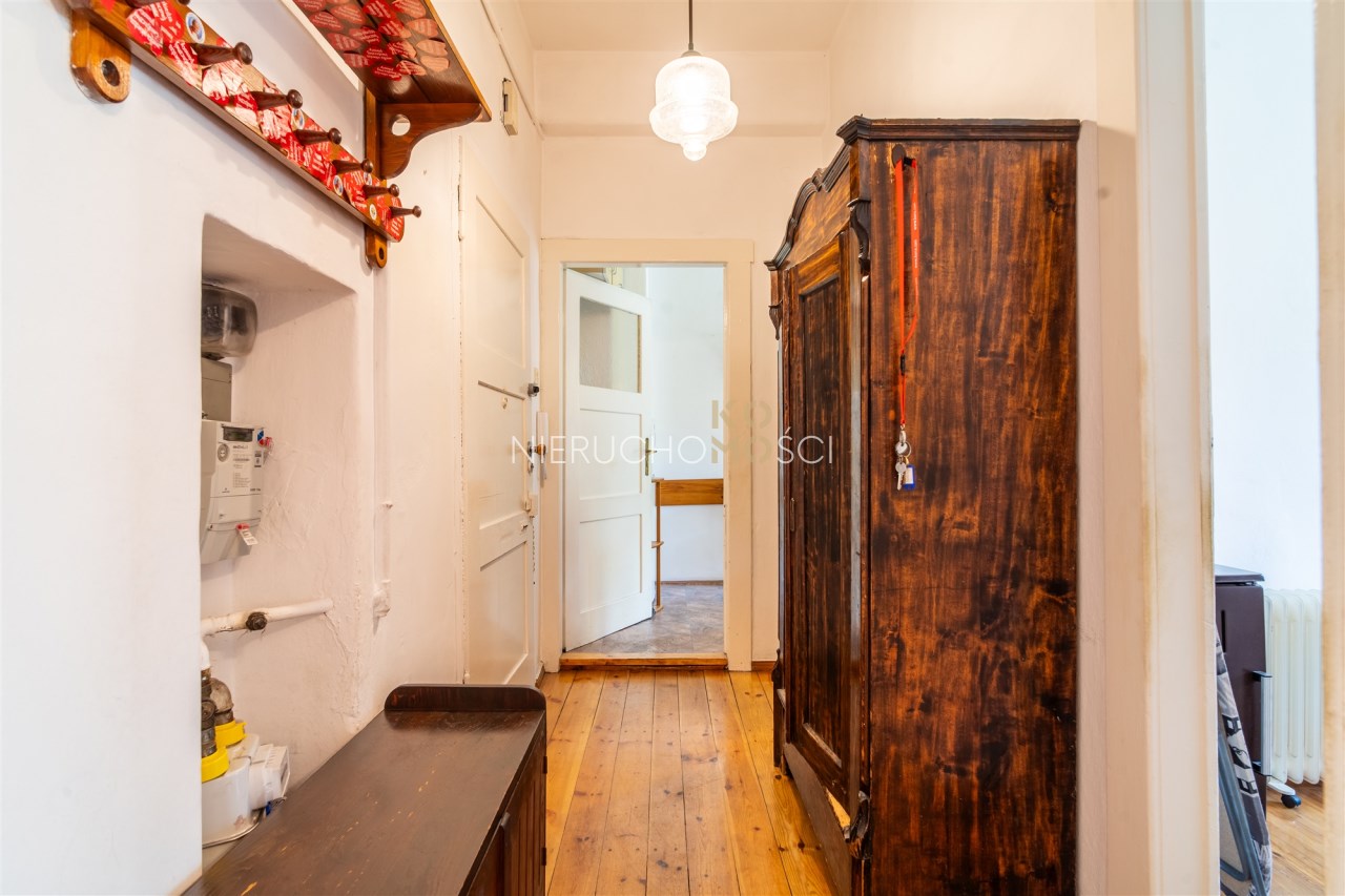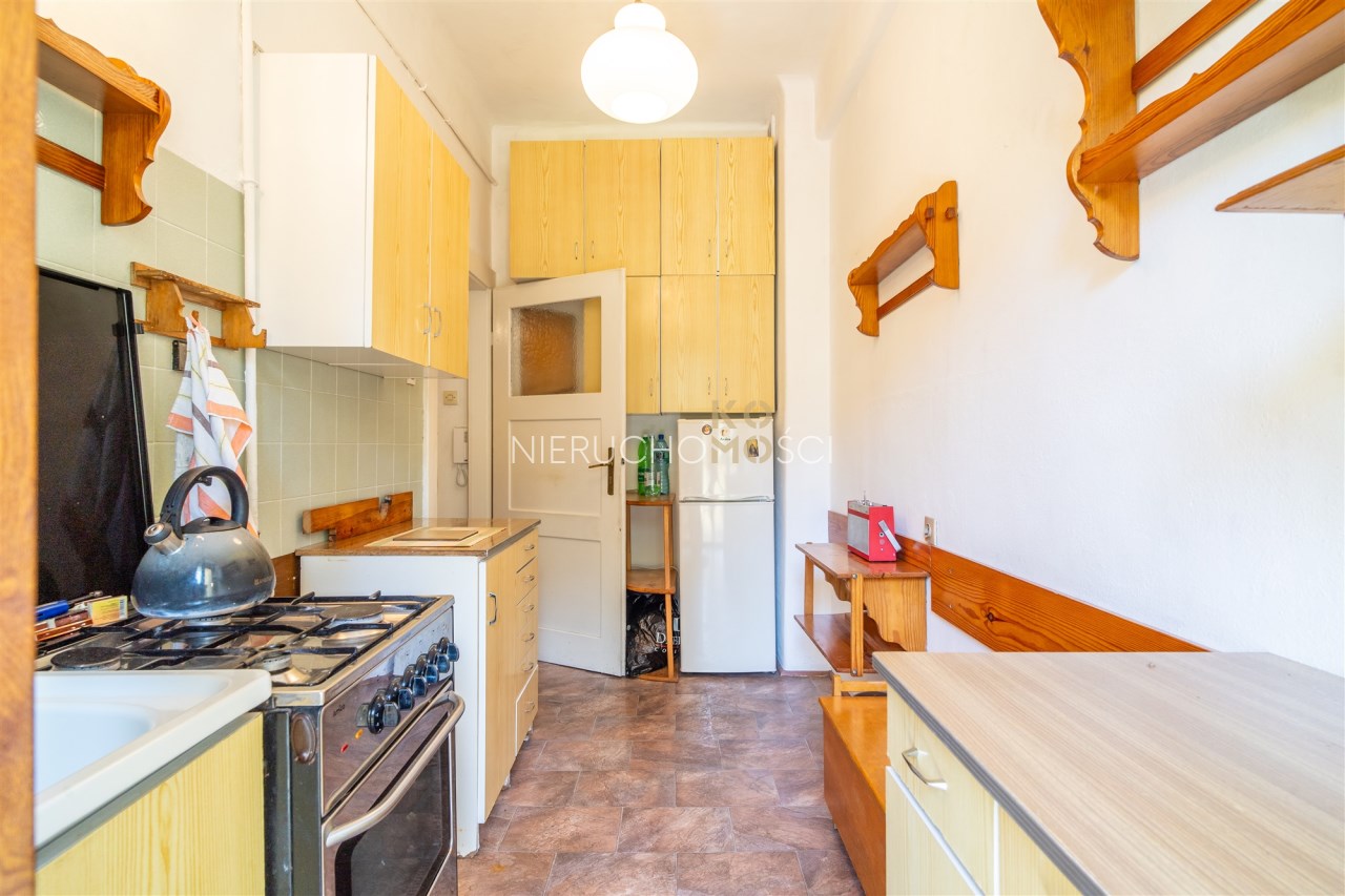 Lokal składa się z dwóch oddzielnych pokoi, kuchni z wyjściem na balkon, łazienki z oknem oraz przestronnego przedpokoju. Wysokie sufity (3 m) i oryginalny, zachowany parkiet dodają wnętrzu wyjątkowego charakteru. W lokalu wymieniono okna na nowe PCV. Obecnie założone ogrzewanie elektryczne. Możliwość założenia pieca gazowego.