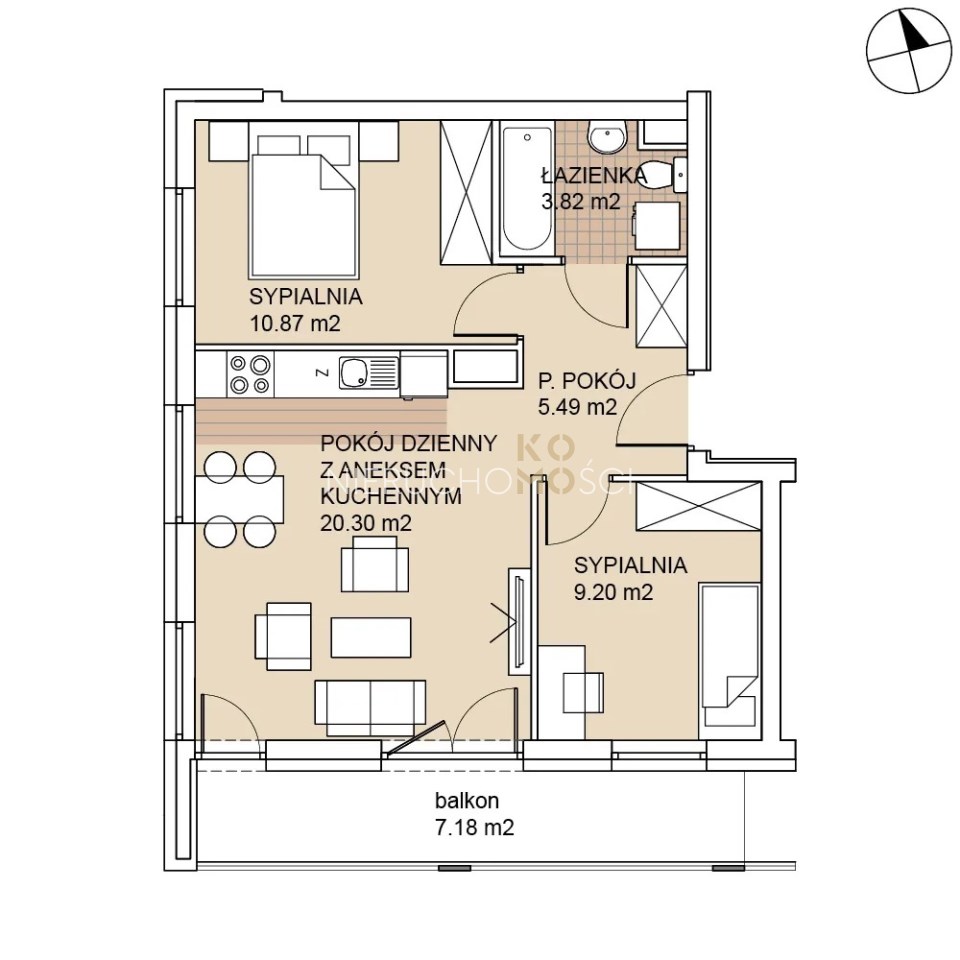 Na mieszkanie o powierzchni 50 m2 składa się: